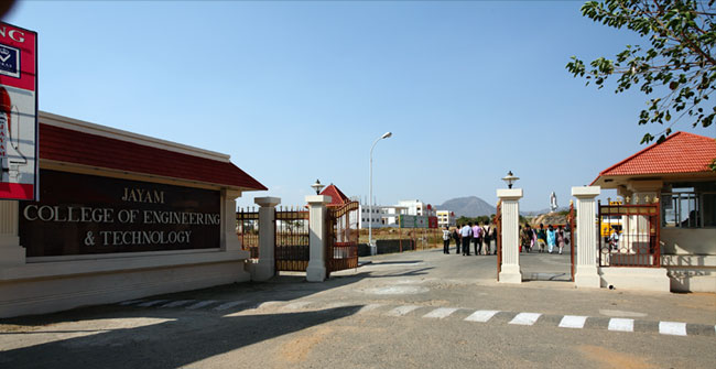 Jayam College Of Engineering And Technology is providing quality education with a dedicated service to Technical Education. The College has earned a reputation for Technical expertise, commendable facilities, a track record of performance, good discipline with excellent results and enterprising students. The College obtained the prestigious ISO 9001:2008 Certification and the BE and B.Tech Branches has been accredited by the NBA Accreditation an autonomous body of the All India Council for Technical Education (AICTE). (B.E-Aero B.E-CSE, B.E-CIVIL, B.E-ECE, B.E-EEE, B.E-MECH, B.Tech-IT).